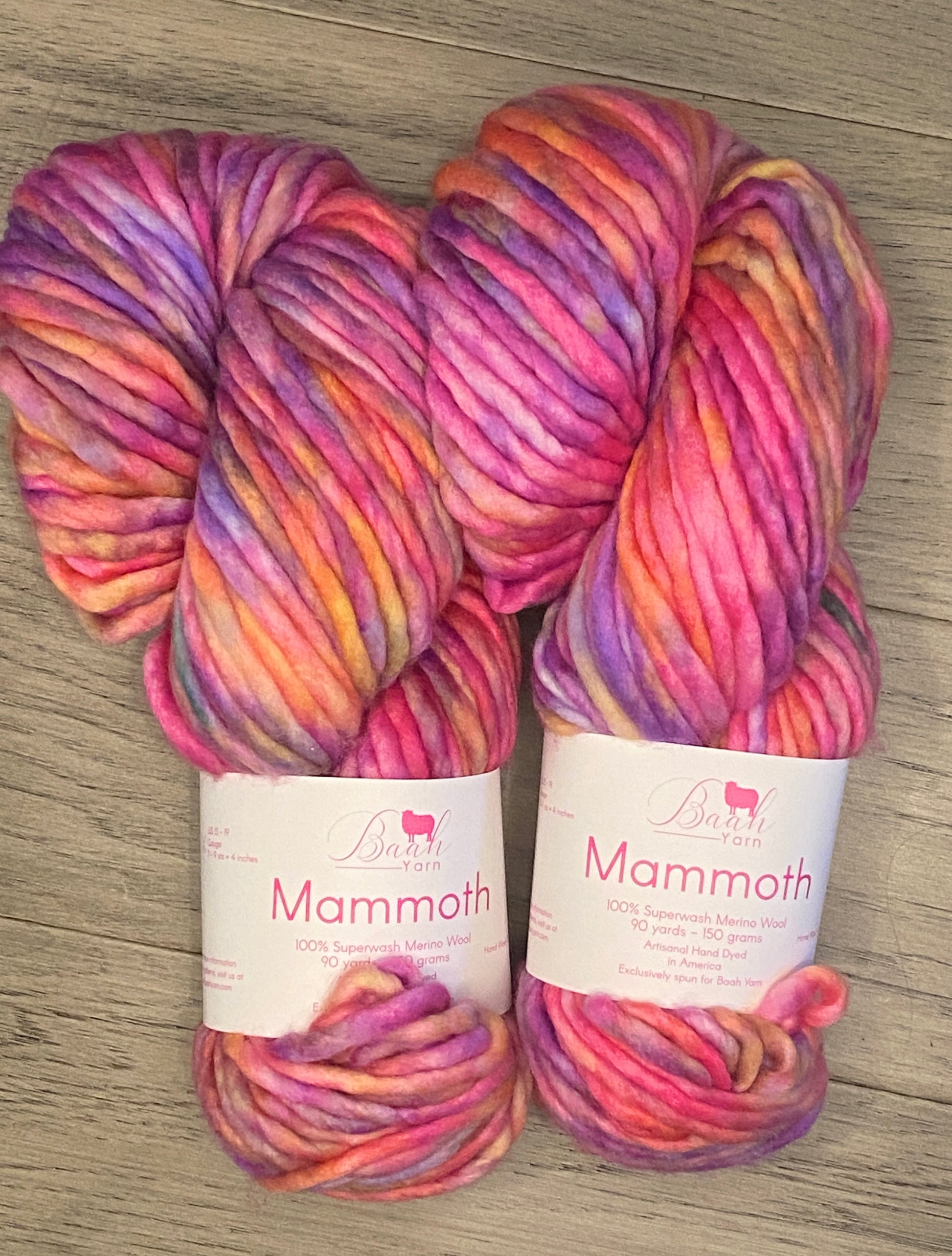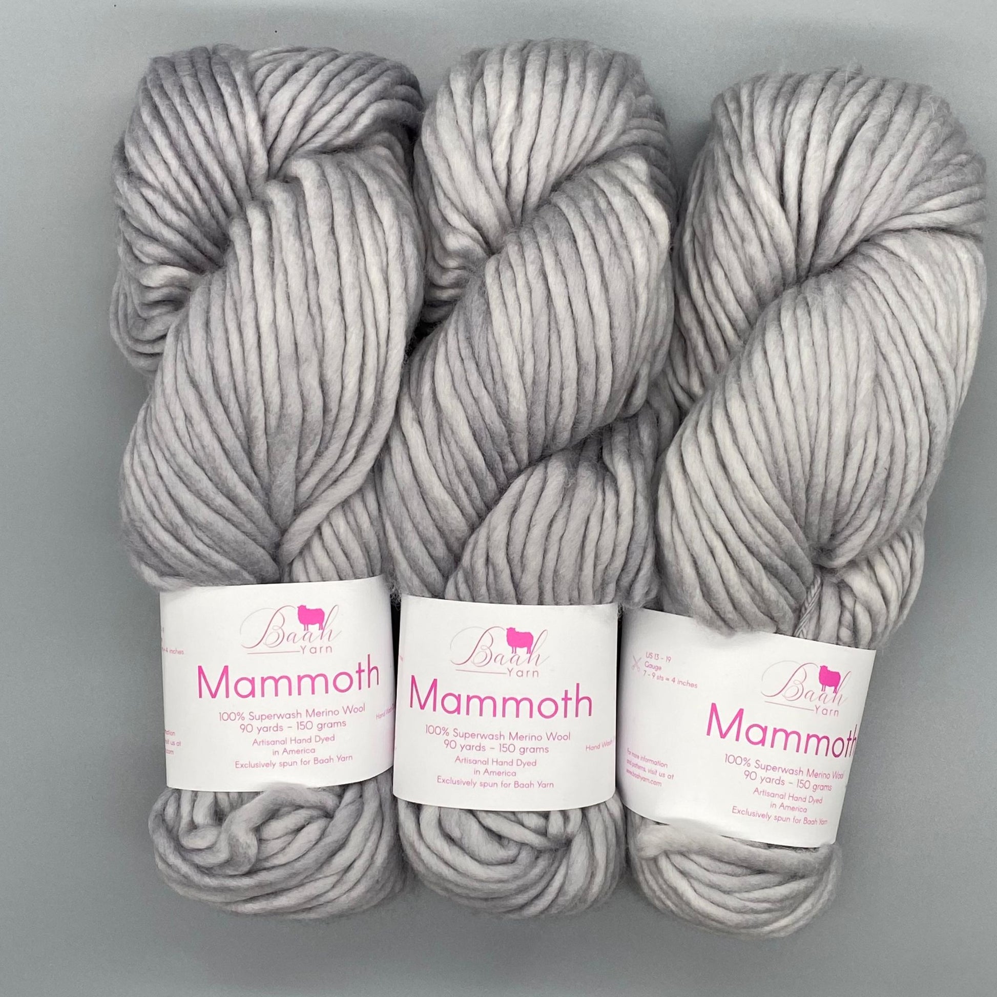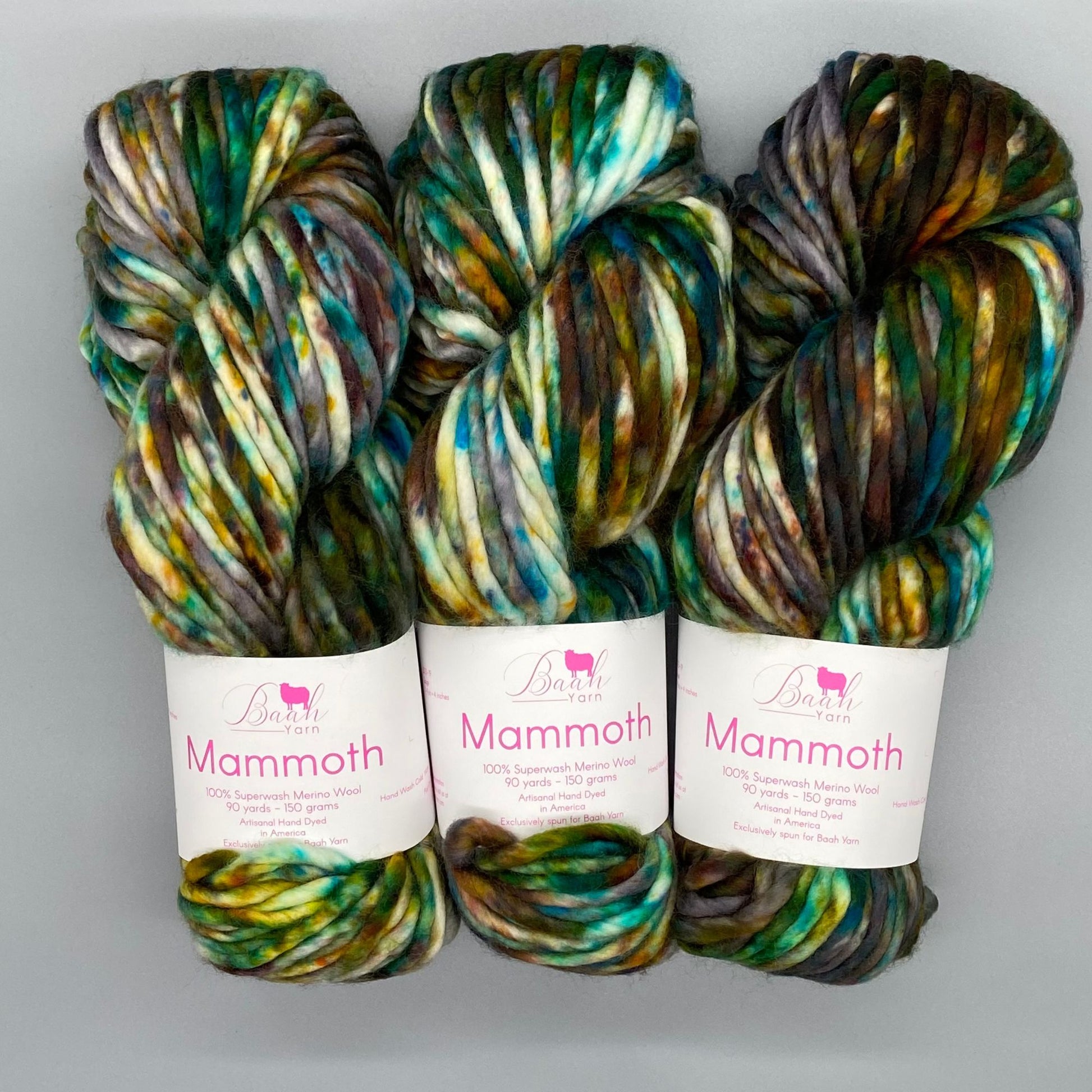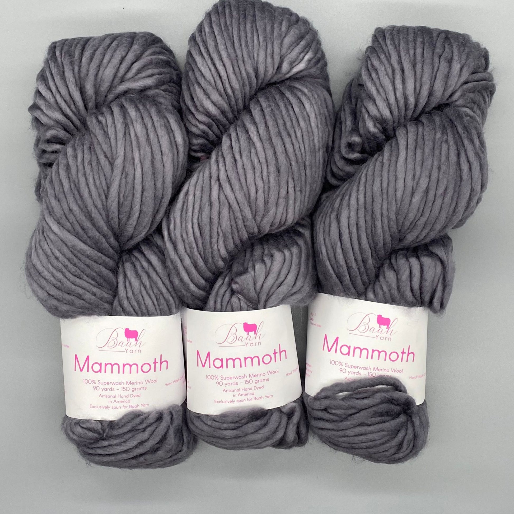 Introducing Baah Mammouth - the ultimate statement accessory for quick projects. Made with luxurious, 100% superwash merino wool, this super bulky yarn is soft, buttery, and offers vibrant colors for self expression. Its single ply canvas allows for easy and quick knitting, making it perfect for on-the-go projects. Elevate your crafting with Baah Mammouth.